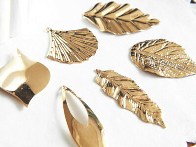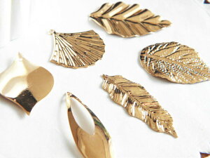 【卸売り】単価約19.8円 金属チャーム 薄くて軽いチャーム 10個 / 葉っぱ/羽根/しずく/扇/花びら/秋/リーフ/ハンドメイド/手芸/メタルパーツ/アクセサリー/資材/材料/副資材